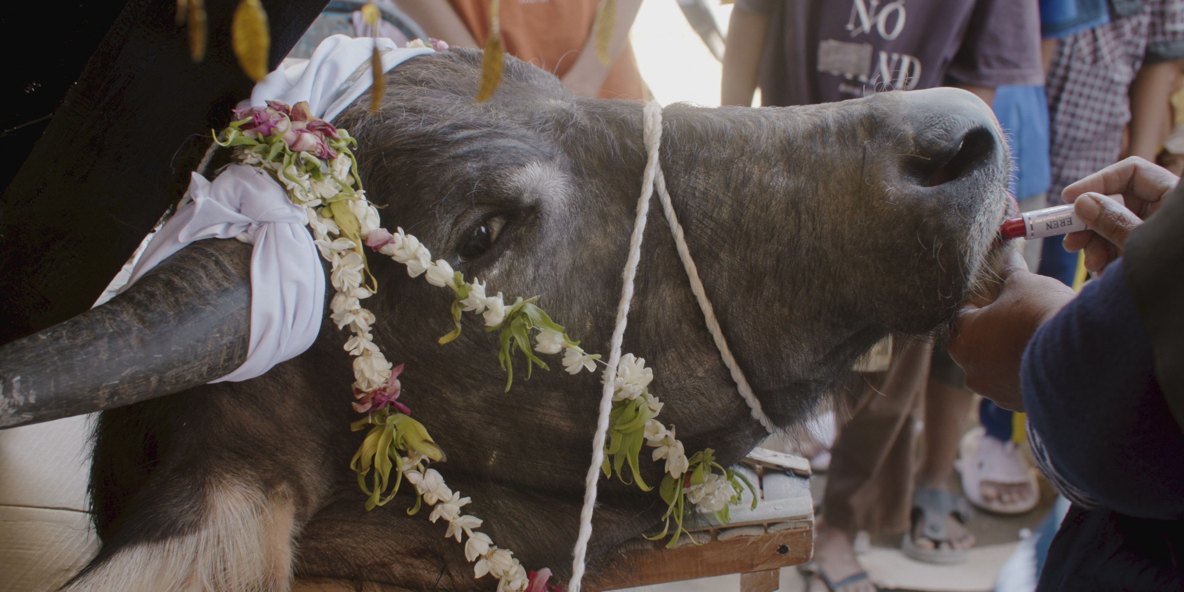 A reimagining of puppet theater through wayang kulit—Indonesian shadow puppets crafted from buffalo hide. Departing from the text-driven tradition, the film unfolds in silent episodes featuring the clown-servant Petruk as an observer of life and performance. Interwoven are documentary scenes of the Javanese Nadran ritual—a three-day sea offering that culminates in a buffalo sacrifice.